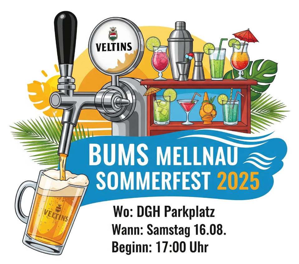 Sommerfest der BuMs "Sommerfest der BuMs" 16 August, 2025, 17:00 Uhr bis 23:59 Uhr Veranstaltungsort: Bürgerhaus Mellnau Burgstraße 42 35083 Wetter-Mellnau Weitere Informationen: Parkempfehlung: Direkt am Haus.