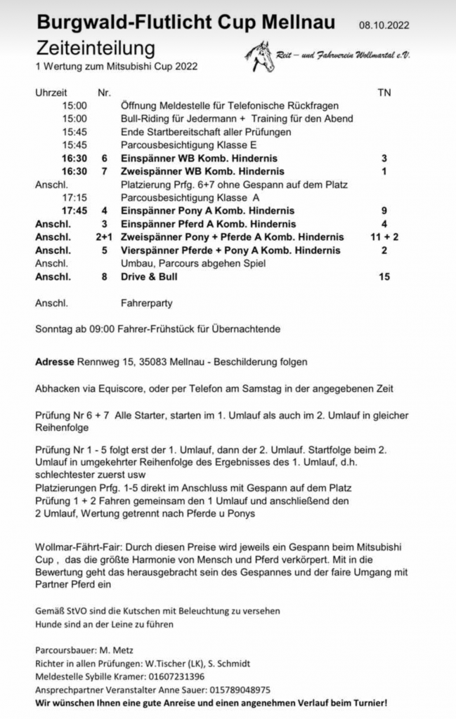 Los geht’s am 8. Oktober bei uns in Mellnau. Wir haben Prüfungen für unter 18-jährige sowie Ponys- und Pferde- Ein-, Zwei- und Vierspänner. Wir freuen uns über zahlreiche Nennungen.