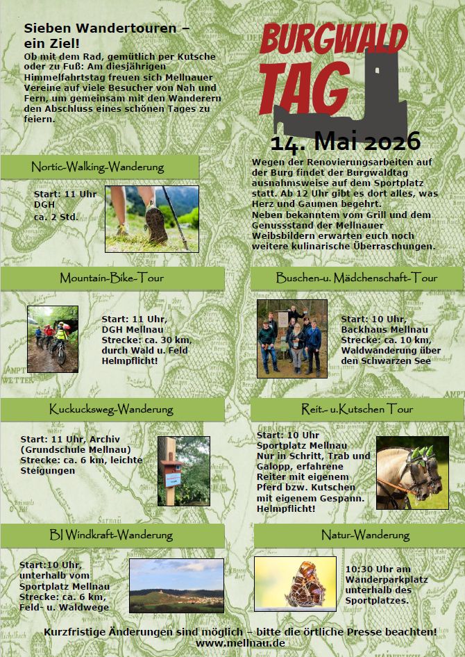 ACHTUNG! Aufgrund der Renovierungsarbeiten auf der Burg ist das diesjährige Ziel der Sternwanderung der Sportplatz!