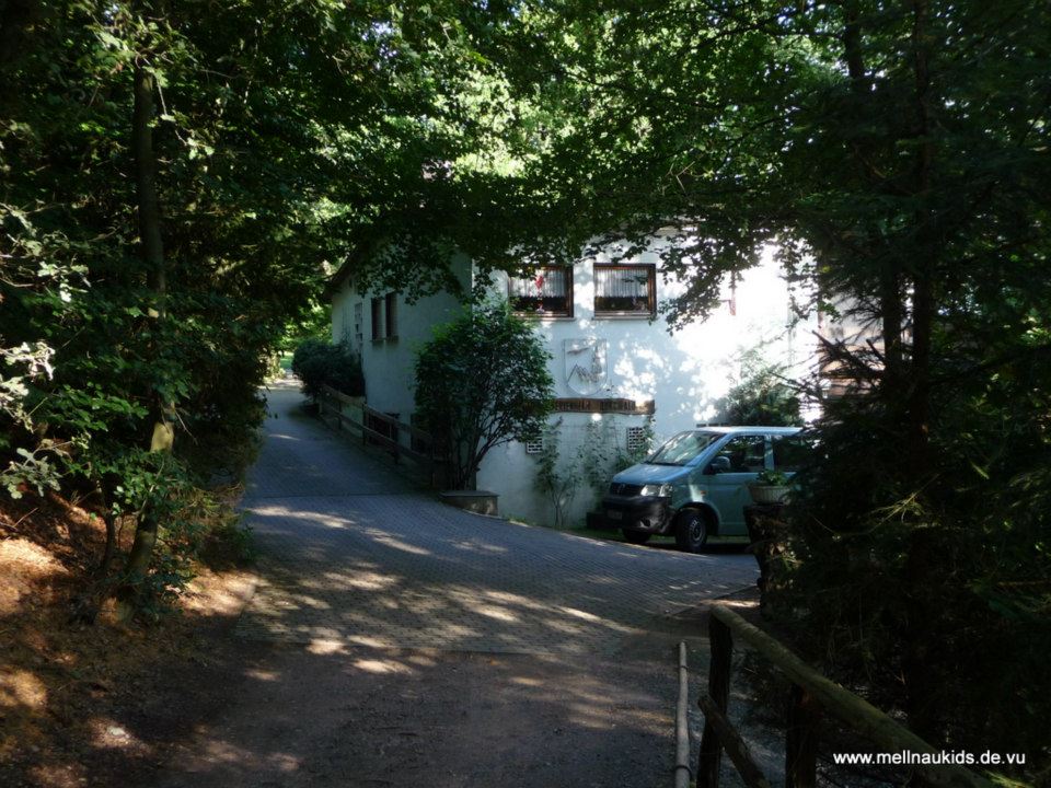 Im Jahr 1956 suchten wir nach einem Zeltplatz und wir bekamen von den “Marburger Naturfreunden” die Anschrift vom “Burggaststättenwirt”; so kamen wir nach Mellnau. Vom 06. bis 26. August hatten wir unser erstes Lager dort. Wir stellten unterhalb der Burg vier Zelte auf und noch einmal drei Zelte auf dem “Campingplatz”. Wir brachten 60 Kinder unter. Bei Max Tittel haben wir in der Waschküche gekocht. Daneben war ein Raum, in dem sich die Kinder gewaschen haben. Im Garten auf der Tanzfläche haben wir gegessen und bei schlechtem Wetter ging es in die Gaststube.
